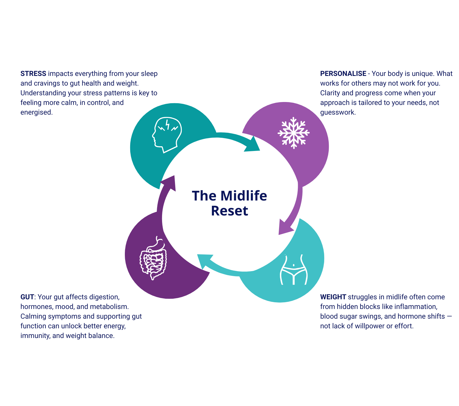 In no time, you’ll uncover the real drivers behind stubborn midlife weight gain — from food and stress to gut health, hormones, and recovery — and learn where to focus first for lasting results.